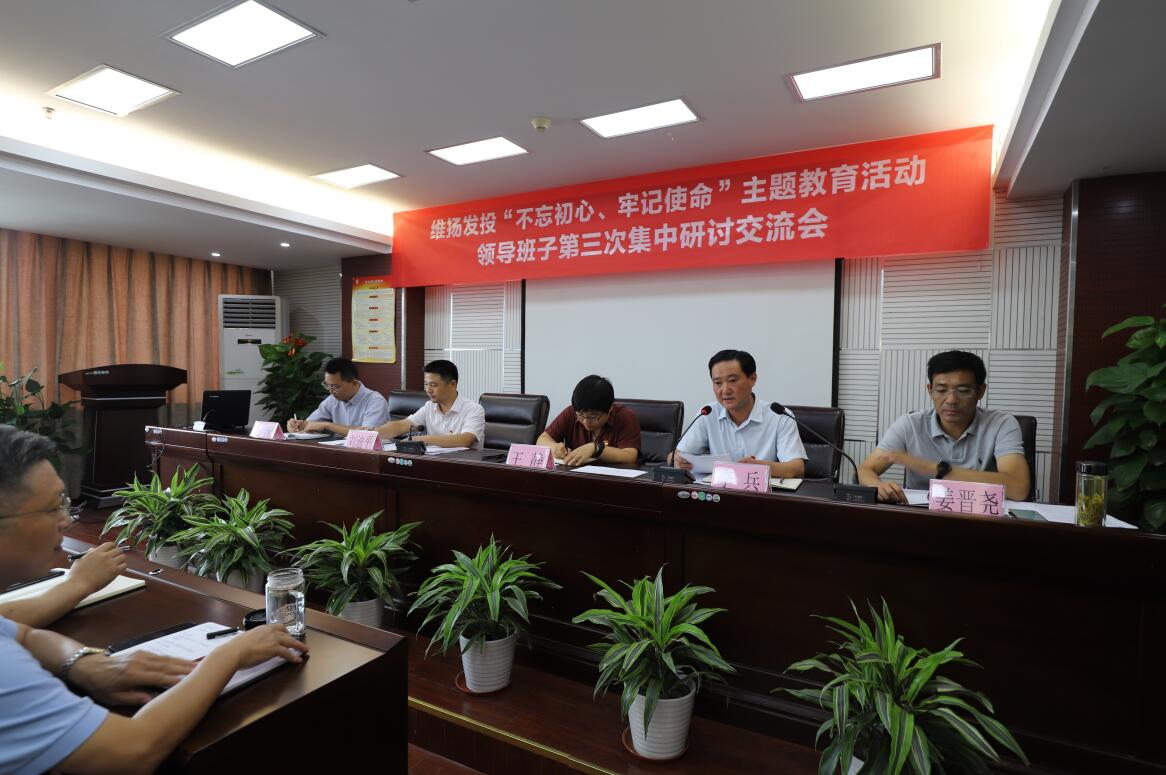 為貫徹落實區(qū)委《關于開展“不忘初心、牢記使命”主題教育的實施方案》總體要求,根據(jù)計劃安排,2019年9月27日上午,在公司大會議室,召開維揚發(fā)投“不忘初心、牢記使命”主題教育活動領導班子第三次集中研討交流會,公司董事長李兵,副董事長、總經(jīng)理劉迪平,副總經(jīng)理姜晉堯以及區(qū)委第八巡回指導組王靜和宋冰兩位同志參加了本次集中學習研討。