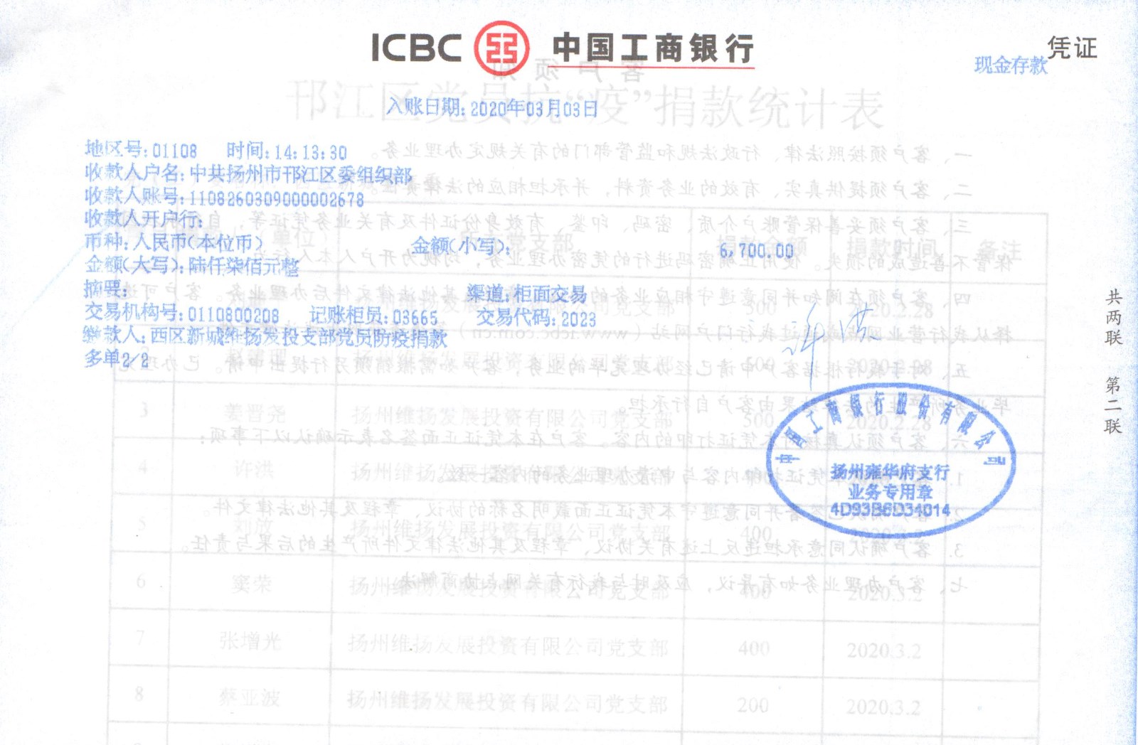 為積極響應(yīng)區(qū)委、區(qū)政府號召,表達(dá)公司黨員職工對疫情防控工作的堅定支持。3月3日下午,由公司黨支部牽頭,組織黨員干部、普通職工以及相關(guān)合作單位開展自愿捐款活動,支持疫情防控。 公司黨支部書記、副董事長劉迪平首先發(fā)起捐款倡議,“黨有號召,我有行動”。班子成員緊隨其后,黨員職工及合作企業(yè)紛紛響應(yīng),踴躍捐款,用點滴愛心集聚起支援疫情防控的強(qiáng)大正能量。 涓流不吝,以成江河。截止目前,公司黨支部一共向邗江區(qū)委組織部賬戶匯入黨員抗疫特殊黨費6700元。公司員工及合作單位也籌集了13400元的抗疫愛心捐款,匯款至邗江區(qū)紅十字會。 疫情期間,我公司全體黨員干部職工,以實際行動為疫情防控盡一份心意,詮釋了共產(chǎn)黨員和國企人的初心本色。