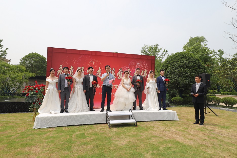 系列活動(dòng)三:“永遠(yuǎn)跟黨走 讓愛永相伴”集體婚禮 7月1日上午,在中國共產(chǎn)黨成立99周年的大喜日子,公司黨支部組織公司黨員干部職工為公司四對(duì)新人舉辦了一場別開生面的集體婚禮。 婚禮現(xiàn)場,公司黨支部副書記、總經(jīng)理趙建理受維揚(yáng)發(fā)投黨支部、董事會(huì)的委托,代表維揚(yáng)發(fā)投全體同仁為幾對(duì)新人送上最美好的祝愿的同時(shí),也向幾位新人提了兩點(diǎn)希望: 一是希望幾對(duì)新人在今后的的生活中傳承良好家風(fēng),互敬互愛、和睦相處,孝敬雙方父母,做一個(gè)好丈夫、好妻子、好女婿、好兒媳。二是希望幾對(duì)新人在今后的工作中互相支持、互相鼓勵(lì)、積極工作,成為事業(yè)有為的好青年,為中國特色社會(huì)主義偉大事業(yè)不懈奮斗。 舉辦集體婚禮是新時(shí)代移風(fēng)易俗、婚事新辦的好形式,也是維揚(yáng)發(fā)投始終堅(jiān)持“文化塑企”的理念體現(xiàn),維揚(yáng)發(fā)投將始終堅(jiān)持“以人為本”,一以貫之關(guān)心職工、服務(wù)職工。